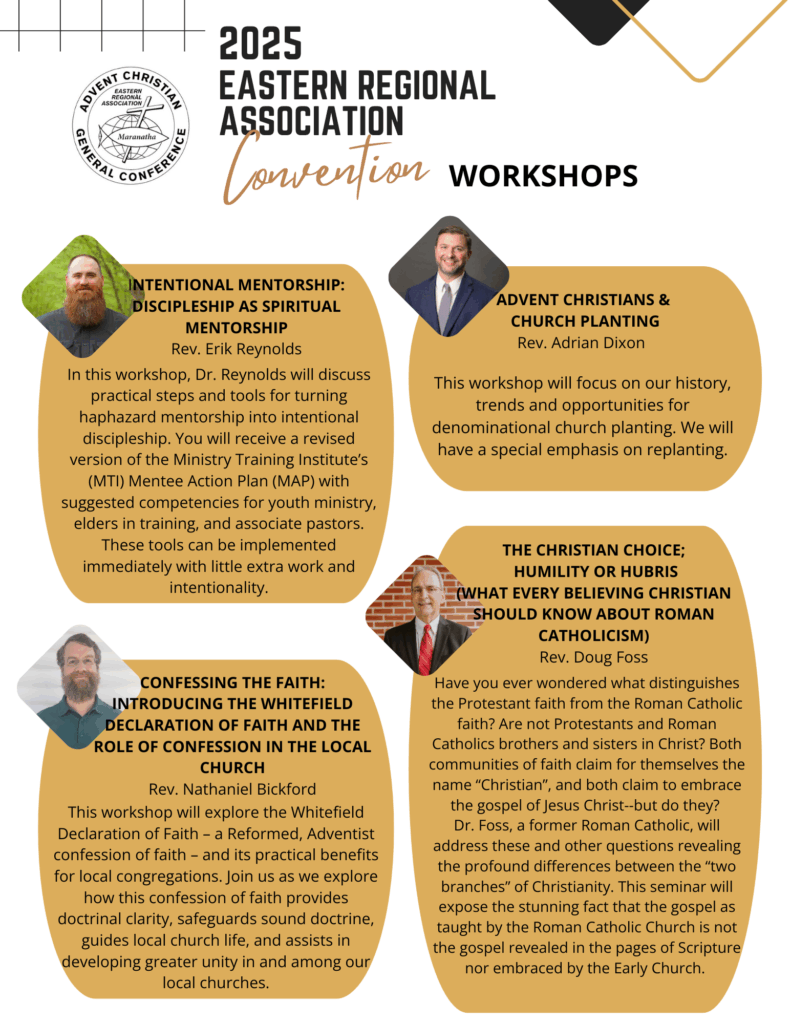 Reports Nominating Committee ReportMaranatha Conference ReportNew Life Conference ReportHeritage Conference ReportMaine Conference ReportACGC ReportERA Rep to ACGC ReportERA President ReportERA Superintendent ReportHighlights of Board ActionsACRC ReportBerkshire ReportBICS ReportNecrology Report Financial Reports ERA Management Report2026 Recommended Budget Candidate Biographies Biographies
